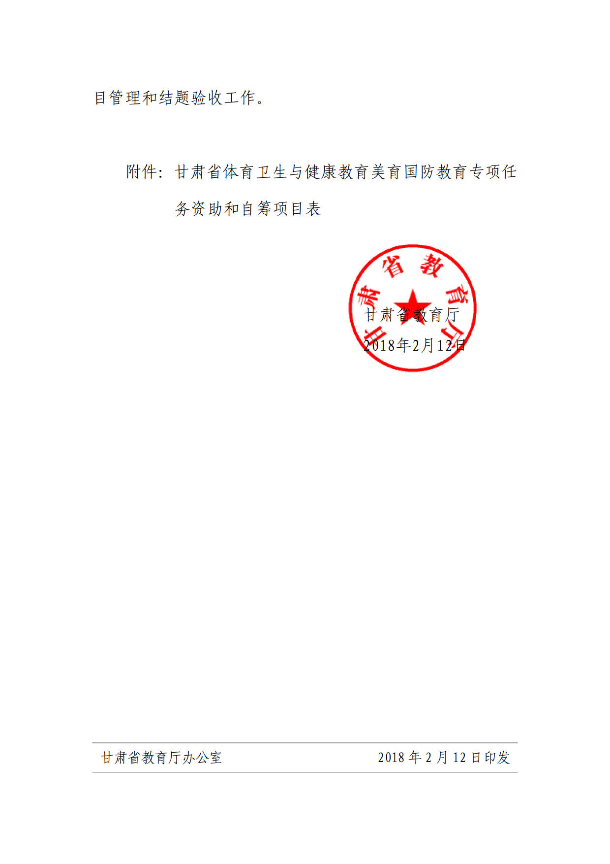 轉(zhuǎn)發(fā)甘肅省教育廳關(guān)于下達(dá)全省體育衛(wèi)生與健康教育美育國(guó)防教育專(zhuān)項(xiàng)任務(wù)資助和自籌項(xiàng)目的通知