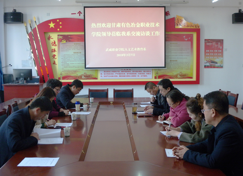 3月7日上午,甘肅有色冶金職業(yè)技術(shù)學(xué)院教育系負責人妙學(xué)春一行4人蒞臨我系進行交流學(xué)習,系黨總支書記胡靜峰、各教研室主任參加了會議。