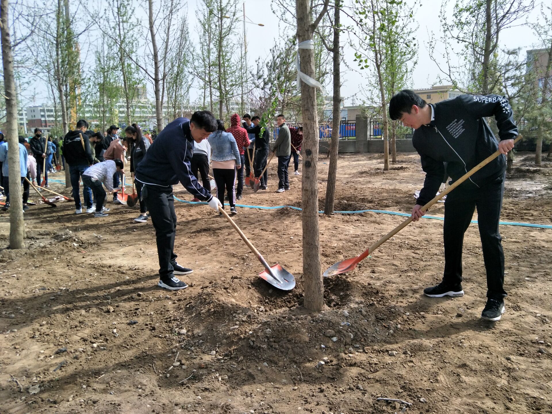 醫(yī)學(xué)技術(shù)學(xué)院黨總支在深入學(xué)習(xí)黨的十九大精神,貫徹全國兩會(huì)精神,積極響應(yīng)習(xí)近平總書記提出的“青山綠水就是金山銀山”的生態(tài)建設(shè)號(hào)召,緊緊圍繞武威市委提出的“依法治綠、依規(guī)興綠、拆墻透綠、見縫插綠、應(yīng)綠則綠、成倍增綠”的目標(biāo)要求。4月13日下午,醫(yī)學(xué)技術(shù)與信息管理黨總支全體黨員干部參加了校園植樹勞動(dòng),充分發(fā)揮黨員的先鋒模范帶頭作用,為武威市創(chuàng)建全國文明城市和學(xué)院創(chuàng)建省級(jí)文明校園貢獻(xiàn)自己的力量。