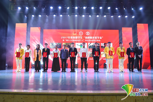 4月19日,2017年度高職學(xué)生“勁牌陽光獎學(xué)金”暨“踐行工匠精神先進個人”尋訪活動頒獎分享會在寧波職業(yè)技術(shù)學(xué)院舉行?;顒佑蓤F中央學(xué)校部、全國學(xué)聯(lián)秘書處、勁牌有限公司聯(lián)合開展,共評選出10名特別獎獲得者和300名優(yōu)秀獎獲得者。我院人文藝術(shù)系林露同學(xué)榮獲2017年度高職學(xué)生“勁牌陽光獎學(xué)金”暨“踐行工匠精神先進個人”優(yōu)秀獎。