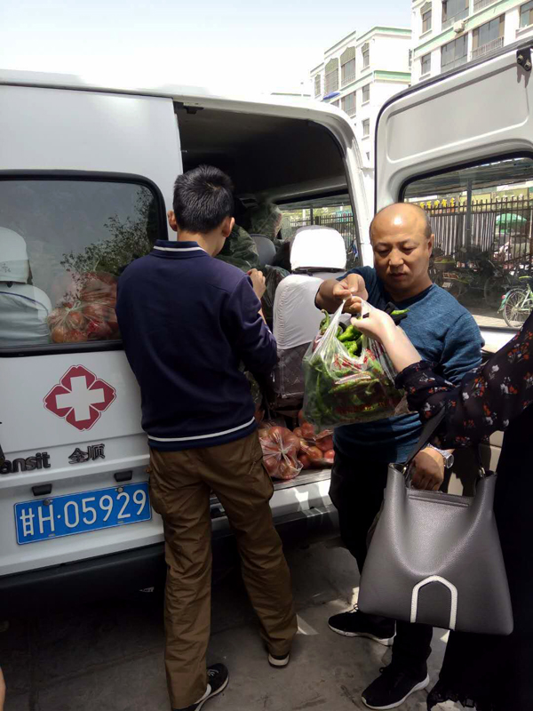 各科室職工們,來自古浪黃花灘的新鮮蔬菜馬上就到,主要為西紅柿跟隴椒,西紅柿一袋十斤20元,隴椒一袋四斤10元,現(xiàn)隴椒數(shù)量少,需要的請早點來,謝謝大家的支持!……”4月28日上午,駐村干部劉金元又在醫(yī)院微信群里吆喝了一嗓子,大家紛紛拎著袋子前來買菜。