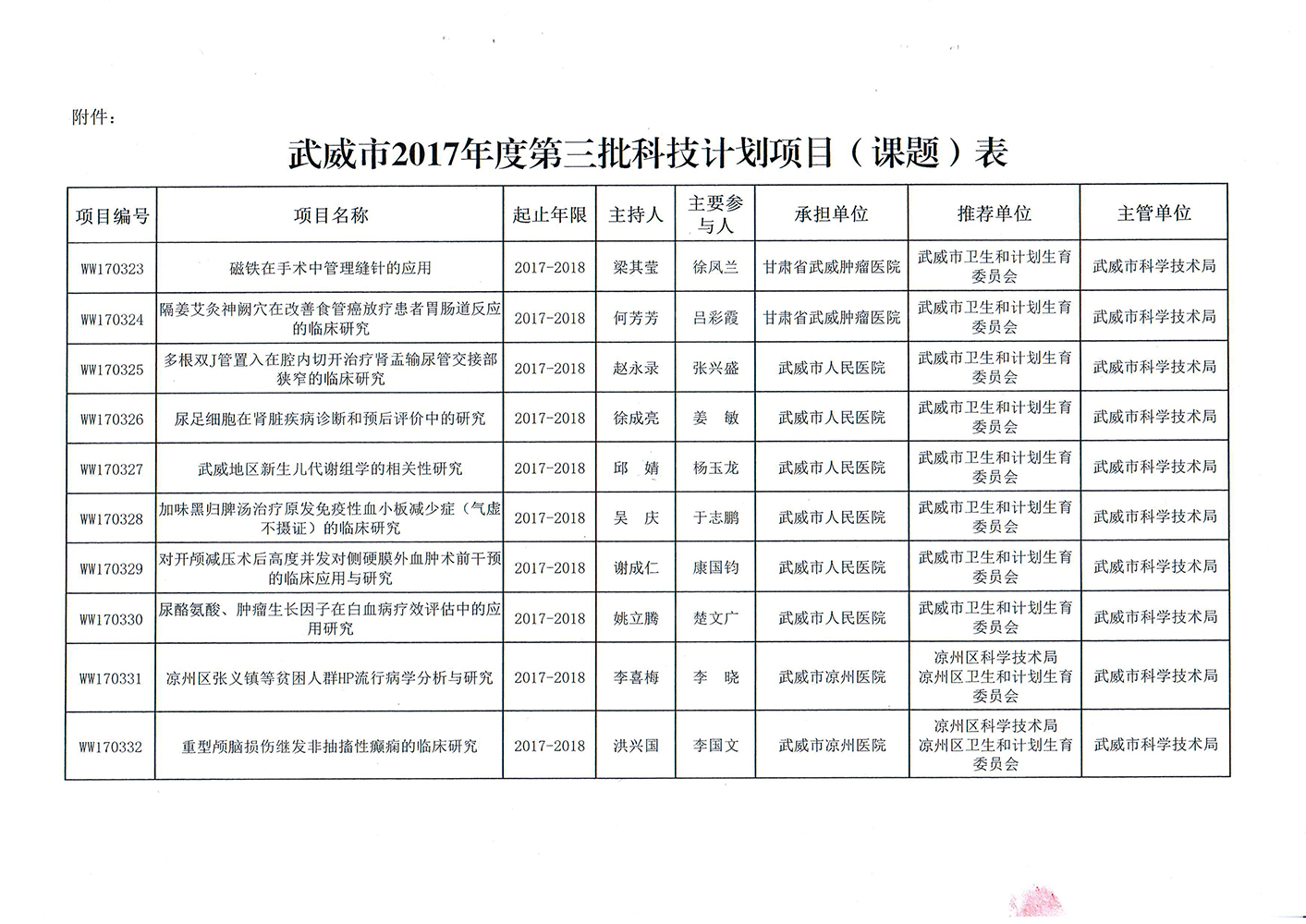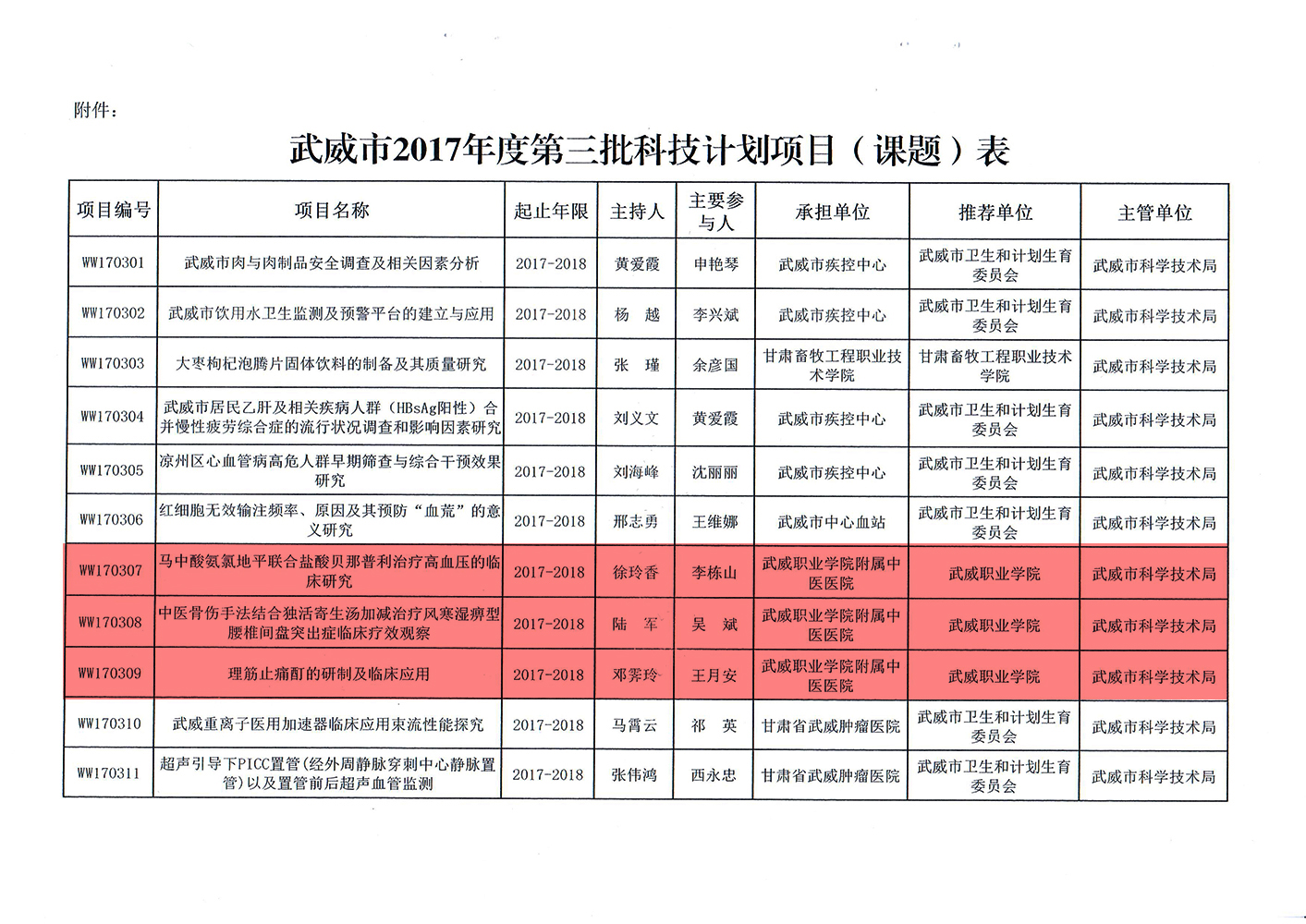 轉(zhuǎn)發(fā)武威市科學(xué)技術(shù)局關(guān)于下達(dá)武威市2017年度第三批市列科技計劃項目的通知