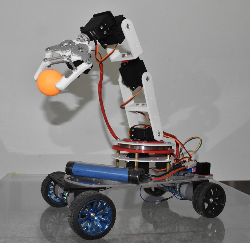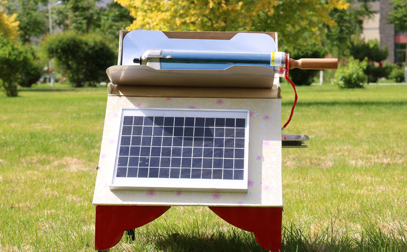 “六自由度撿球機器人”作品是基于STM32F103的六自由度機械臂,運用D-H法對機械臂進行數(shù)學建模,通過MatLab構建運動仿真模型,通過軟件編程實現(xiàn)機械臂的單自由度、多自由度及基本的運動規(guī)劃功能的機器人。“太陽能環(huán)??緺t”是一款基于太陽能光熱、光伏利用的新型太陽能環(huán)??緺t。用戶可將食物切成小塊用錫紙包裹后,放置于烹飪抽屜之中,烹飪抽屜置于真空集熱管中,通過槽型拋物面聚光集熱器聚焦太陽直射光,產生高溫,加熱真空集熱管里面的食材。這種烤爐綠色、健康,節(jié)能、環(huán)保、熱效率高。