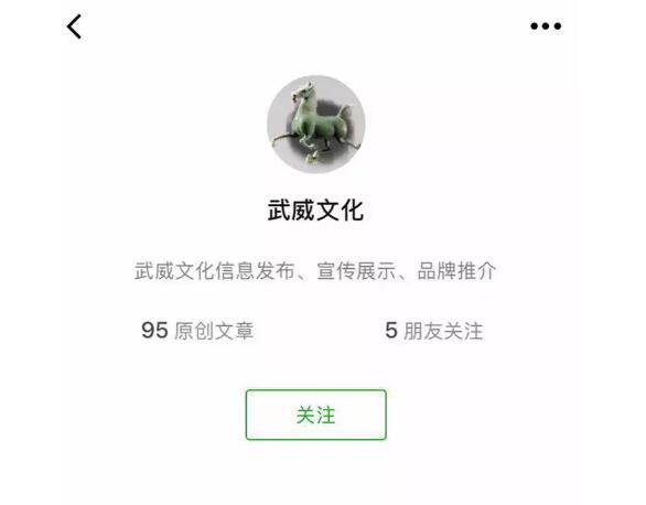 2.點(diǎn)擊“關(guān)注”按鈕,關(guān)注“武威文化”公眾號(hào)。