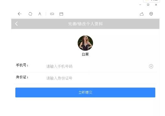 3.完善個(gè)人資料,輸入手機(jī)號(hào)碼、身份證號(hào)碼,點(diǎn)擊立即提交,提交個(gè)人資料。