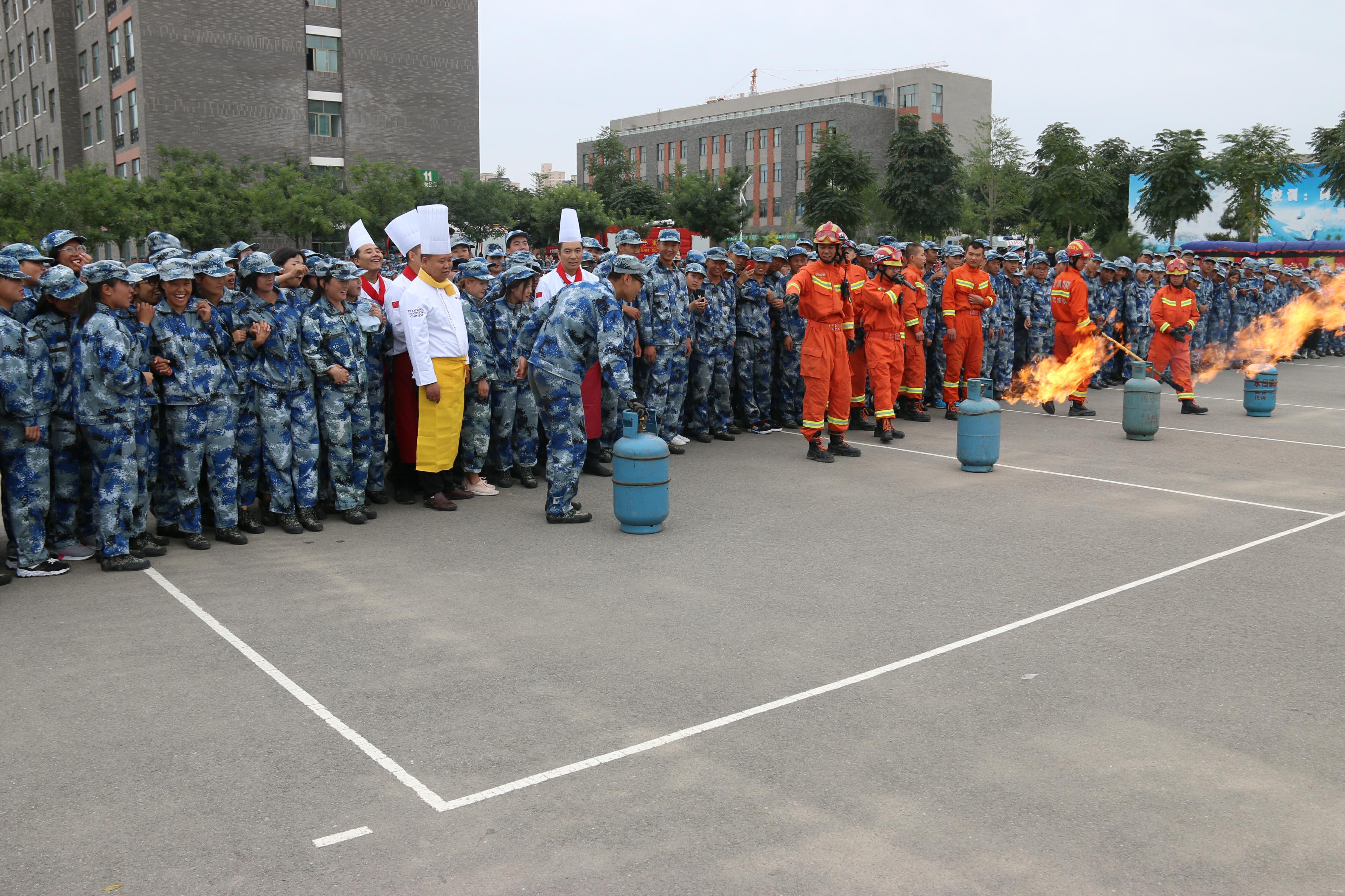 隨后,所有參演學生整隊到操場參加了滅火演練。在消防官兵的講解和和示范下,同學們體驗了處置著火液化氣瓶、干粉滅火器滅火、穿消防救生衣、通過模擬煙室等操作。