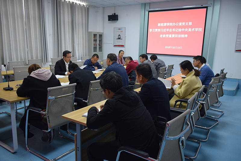 10月19日下午,新能源學(xué)院辦公室黨支部在黨員活動(dòng)室召開(kāi)學(xué)習(xí)貫徹習(xí)近平總書記給中央美術(shù)學(xué)院老教授重要回信精神專題會(huì)議。會(huì)議由黨支部書記任陶主持,支部全體黨員參加了此次會(huì)議。