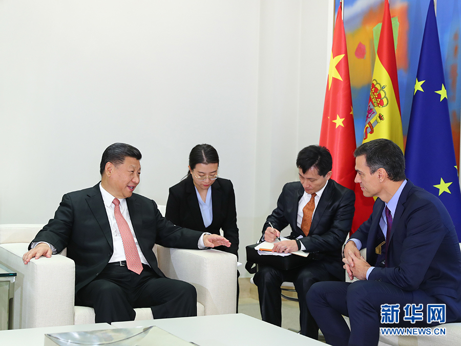 習近平指出,很高興連任中國國家主席后首次訪問歐洲來到西班牙。今年是中西建交45周年。兩國建交以來,雙邊關(guān)系經(jīng)歷國際風云考驗,一直健康穩(wěn)定發(fā)展,中西友好歷久彌新。首相先生致力于發(fā)展中西關(guān)系,積極支持共建“一帶一路”,我們對此表示贊賞。中方始終珍視同西班牙的傳統(tǒng)友誼,重視西班牙在國際事務(wù)中的重要影響,愿同西方攜手努力,豐富中西全面戰(zhàn)略伙伴關(guān)系內(nèi)涵,提升各領(lǐng)域合作水平,為不同文明交流互鑒、不同社會制度國家合作共贏樹立典范。