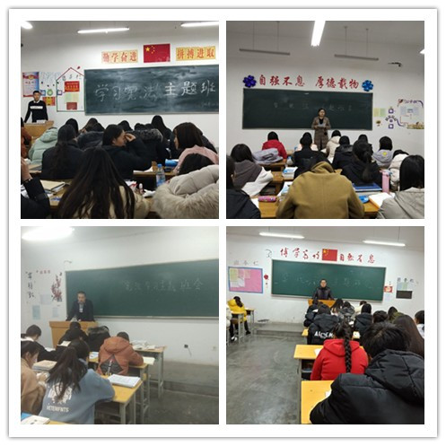 為深入學(xué)習(xí)貫徹習(xí)近平新時(shí)代中國(guó)特色社會(huì)主義思想和黨的十九大精神,牢固樹(shù)立“四個(gè)意識(shí)”,進(jìn)一步維護(hù)憲法法律權(quán)威,強(qiáng)力推進(jìn)法治校園建設(shè),扎實(shí)做好校園憲法學(xué)習(xí)宣傳普及工作,營(yíng)造尊法、學(xué)法、守法、用法的濃厚氛圍,在第五個(gè)國(guó)家憲法日來(lái)臨之際,藥學(xué)系召開(kāi)會(huì)議安排部署了學(xué)習(xí)憲法各項(xiàng)活動(dòng),各班級(jí)也分別召開(kāi)了“學(xué)習(xí)憲法”主題班會(huì)。
