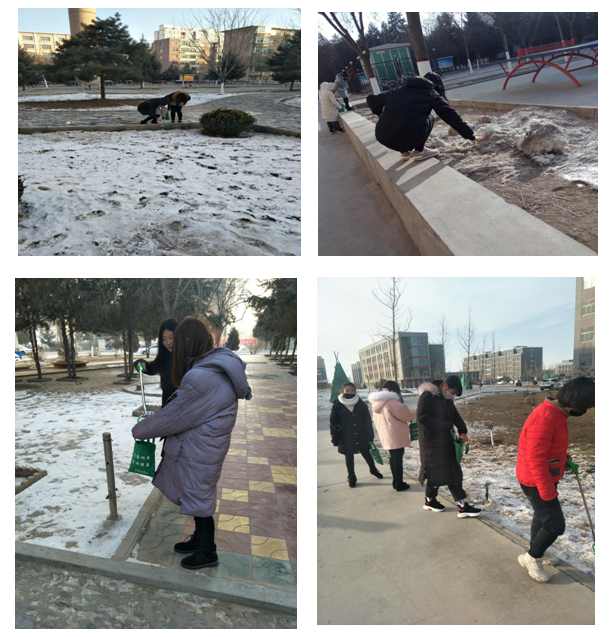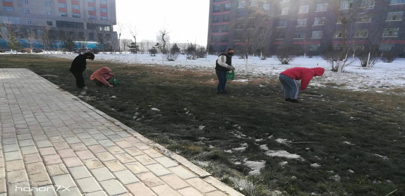 活動期間,由系輔導員齊斌文老師和班主任帶領同學們準備好工具準時在各區(qū)域集合,對校園內(nèi)煙頭、垃圾進行撿拾,為全院師生營造了良好的學習氛圍。