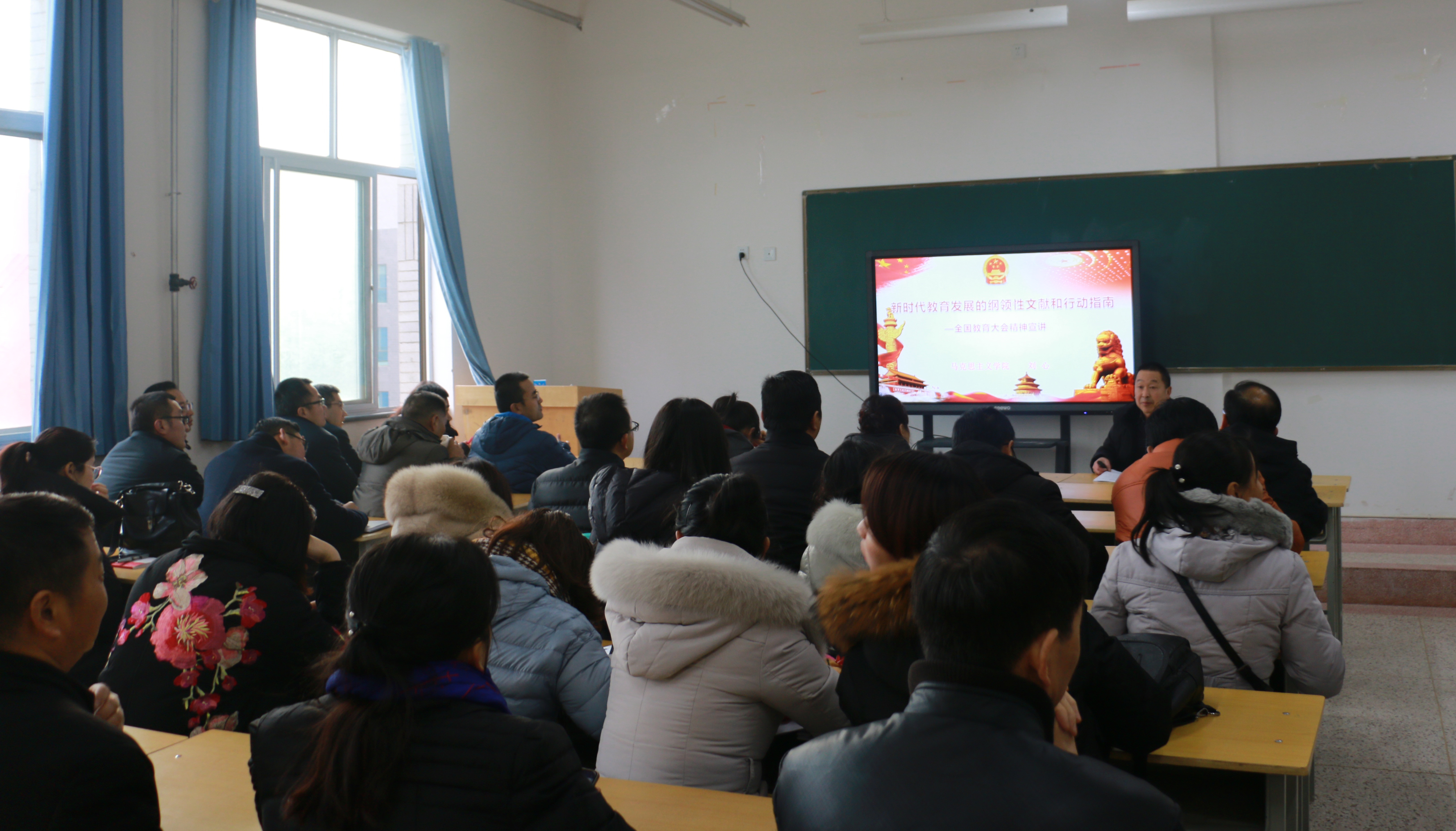12月21日下午,能源工程系與經(jīng)濟管理系、電子信息工程系在行樹樓504教室聯(lián)合開展“全國教育大會精神”宣講活動,宣講會由人文藝術(shù)教育系思政教研室主任劉心主講,能源工程系與經(jīng)濟管理系、電子信息工程系60多名教師參加了本次活動。