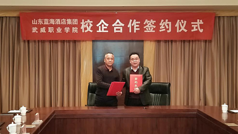 洽談結(jié)束后,潘從民代表武威職業(yè)學(xué)院與山東藍海酒店集團完成了校企合作簽約。