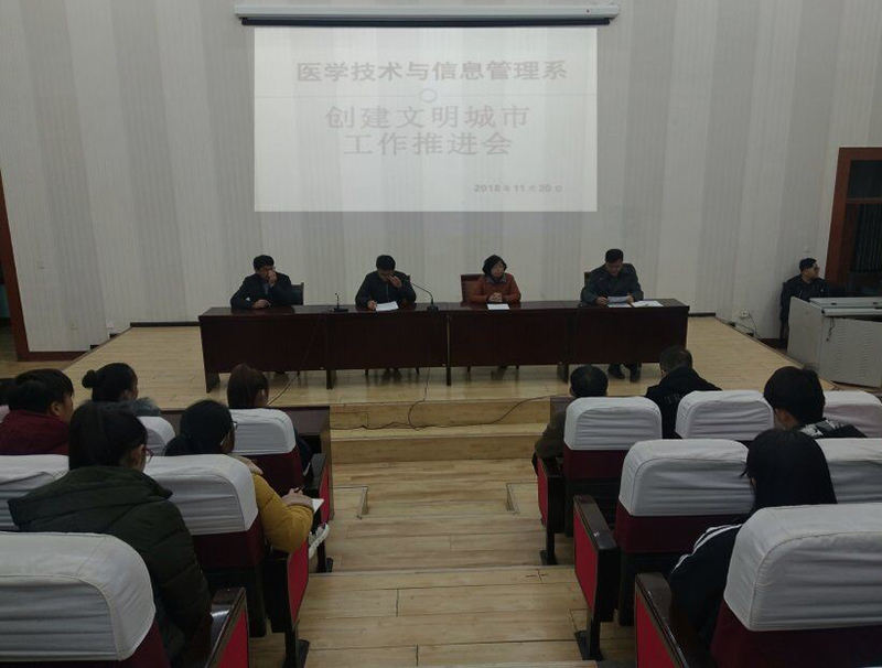 2018年11月20日,醫(yī)學(xué)技術(shù)與信息管理系在尚德樓正德廳召開創(chuàng)建全國文明城市工作推進會,系領(lǐng)導(dǎo)出席會議,輔導(dǎo)員、班主任及200余名學(xué)生參加了會議,會議由蔡濟眾副主任主持。