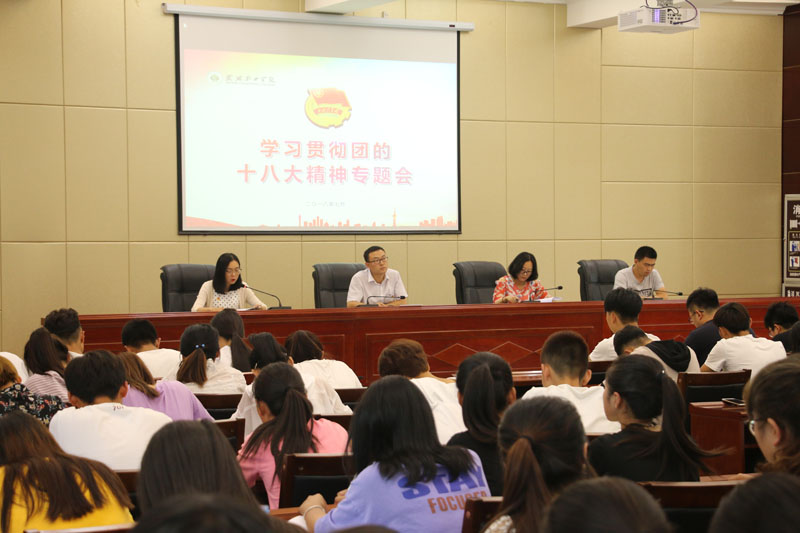 6月26日-29日,中國共產(chǎn)主義青年團(tuán)第十八次全國代表大會(huì)在人民大會(huì)堂勝利召開,來自全國各行各業(yè)共1500余名代表,齊聚人民大會(huì)堂,一起參加了這場青春盛會(huì)。為深入貫徹落實(shí)團(tuán)十八大精神,7月5日下午,院團(tuán)委在行樹樓報(bào)告廳組織召開學(xué)習(xí)貫徹團(tuán)的十八大精神專題會(huì),院系兩級(jí)主要團(tuán)學(xué)干部150余人參加了會(huì)議。