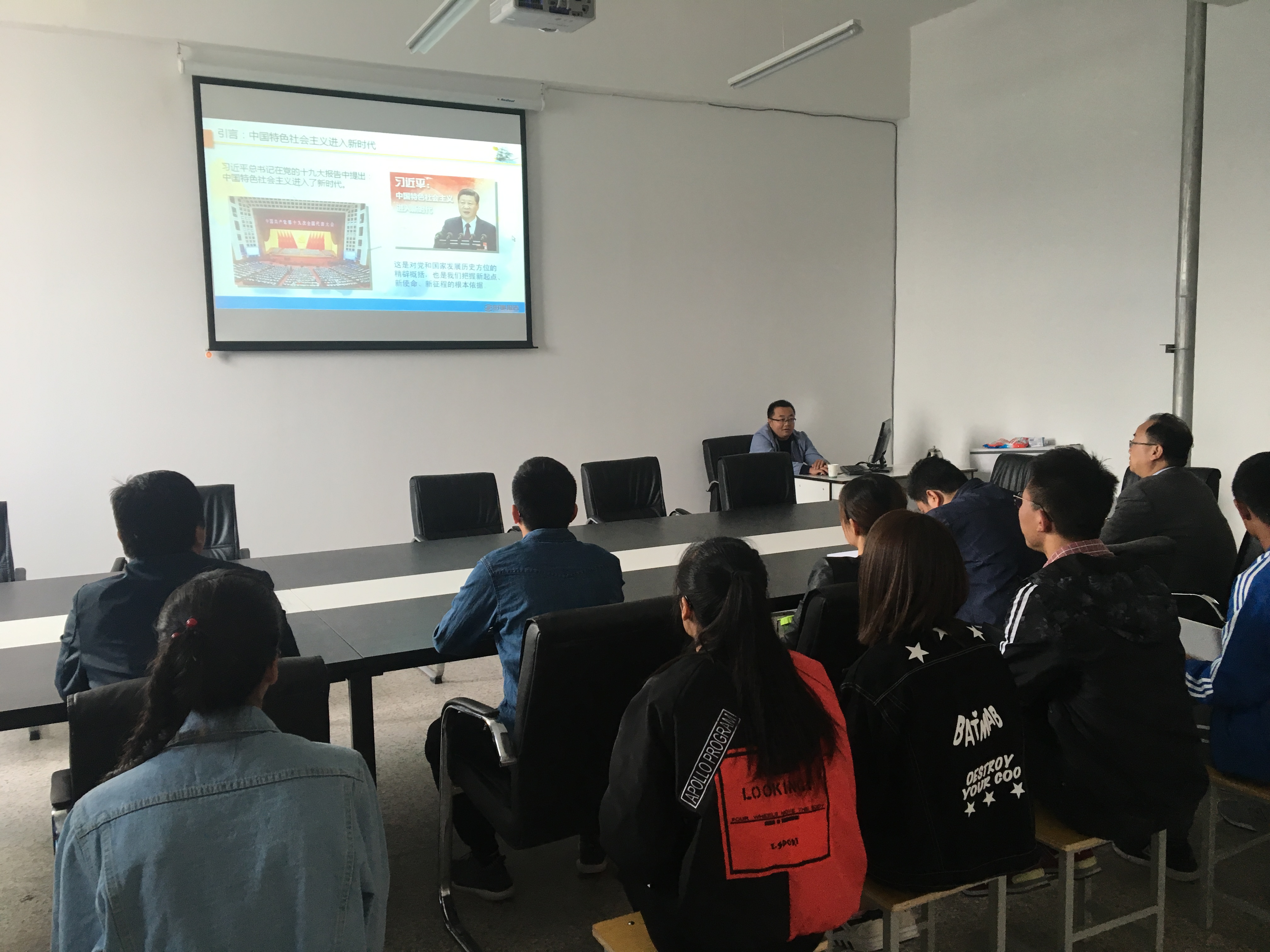根據(jù)學院黨委《關于組織開展深入學習貫徹習近平新時代中國特色社會主義思想和黨的十九大精神主題宣講活動的通知》要求,4月3日下午,能源工程系黨總支組織開展宣講活動,邀請馬克思主義學院宣講組成員、組織人事處副處長魏全民為系黨總支全體黨員、教師和學生入黨積極分子進行習近平新時代中國特色社會主義思想和黨的十九大精神宣講。