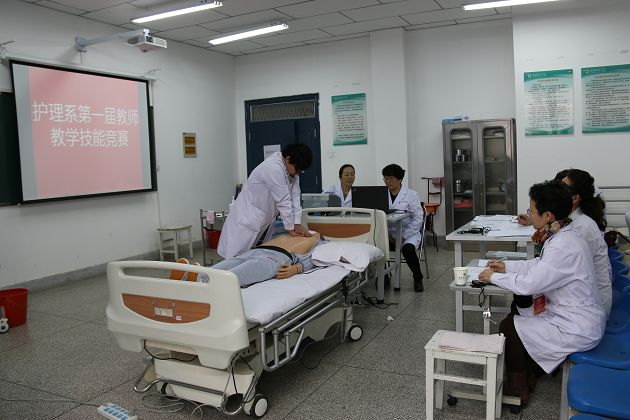 為提高教師的教學水平及實踐操作技能,促進教師間相互學習交流,本著“以賽促學,以賽促教,以賽強技”的宗旨,11月25日,護理系開展教師教學競賽,來自護理系的23位教師參加了本次比賽。教務處、直屬附屬醫(yī)院及護理系的專家擔任比賽評委。本次教學技能競賽分課堂教學和實踐教學技能兩種形式,其中,實踐競賽項目包括心肺復蘇技術、前臂骨折固定包扎技術、心電監(jiān)護操作、靜脈輸液、無菌操作、鋪備用床等六項內容。