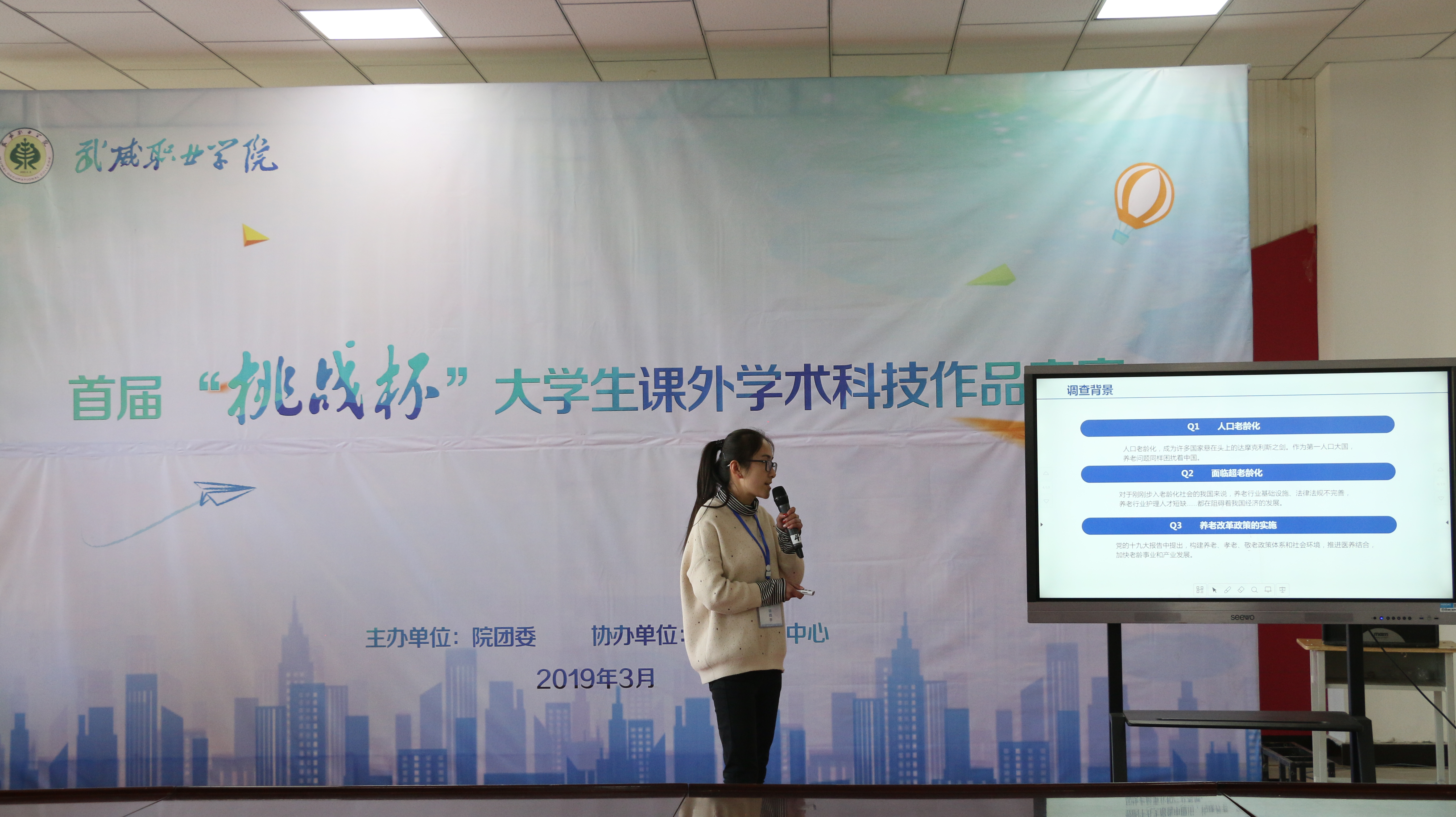 3月14日下午,學(xué)院首屆“挑戰(zhàn)杯”大學(xué)生課外學(xué)術(shù)科技作品競(jìng)賽閉幕式在大學(xué)生活動(dòng)中心學(xué)生事務(wù)中心舉行,副院長(zhǎng)田迎春出席活動(dòng)并講話,相關(guān)部門負(fù)責(zé)人和參賽師生共100多人參加了閉幕式。