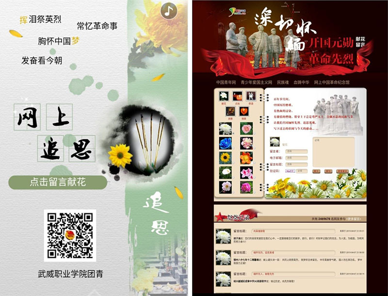 院團委在“武威職業(yè)學(xué)院團青”微信公眾平臺開設(shè)清明網(wǎng)上祭英烈專欄,共有3968名同學(xué)參與了線上活動。同學(xué)們帶著誠摯的敬意向烈士們鞠躬、獻花,并在留言區(qū)發(fā)表祭掃寄語,以此緬懷先烈的豐功偉績,追憶烈士之德。