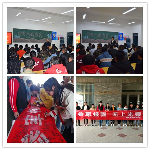 首先蔡海老師向同學們細致地講解了今年的征兵條件、報名方法及相關優(yōu)待政策,深入宣傳依法服兵役的積極意義,鼓勵適齡青年積極報名應征,報效祖國。同時邀請2017級設施農(nóng)業(yè)與裝備大專班趙文文同學做了個人事跡匯報。該生曾在陸軍某部服役,現(xiàn)光榮退伍,回校就讀。交流中,他鼓勵同學們要敢于有夢、敢于追夢、敢于圓夢,讓青春在軍營的歷練中、在為祖國的奉獻中閃光。他還生動的講述了部隊的生活和訓練情況,這段經(jīng)歷使他收獲了遠大的理想信念,培養(yǎng)了良好的行為習慣,練就了強健的身體,這些將會讓他終身受益?;顒?/font>最后進行了“參軍報國,無上光榮”主題簽名儀式。