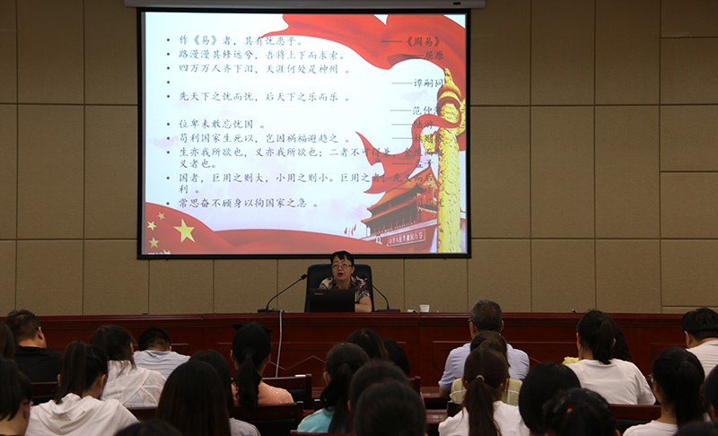 田迎春分別從溯源、求理、踐行三個(gè)方面深刻講解了愛國主義精神的傳承與弘揚(yáng)。一是探尋中華民族愛國主義精神的基因,歷史深刻表明,愛國主義自古以來就流淌在中華民族血脈之中,去不掉,打不破,滅不了;二是洞悉當(dāng)代中國愛國主義的思想真諦,指出對新時(shí)代中國青年來說,熱愛祖國是立身之本、成才之基。三是讓愛國主義精神代代相傳、發(fā)揚(yáng)光大,要求新時(shí)代師生要聽黨話、跟黨走,胸懷憂國憂民之心、愛國愛民之情,懂得奉獻(xiàn)祖國、奉獻(xiàn)人民,以一生的真情投入、一輩子的頑強(qiáng)奮斗來體現(xiàn)愛國主義情懷,讓愛國主義的偉大旗幟始終在心中高高飄揚(yáng)!