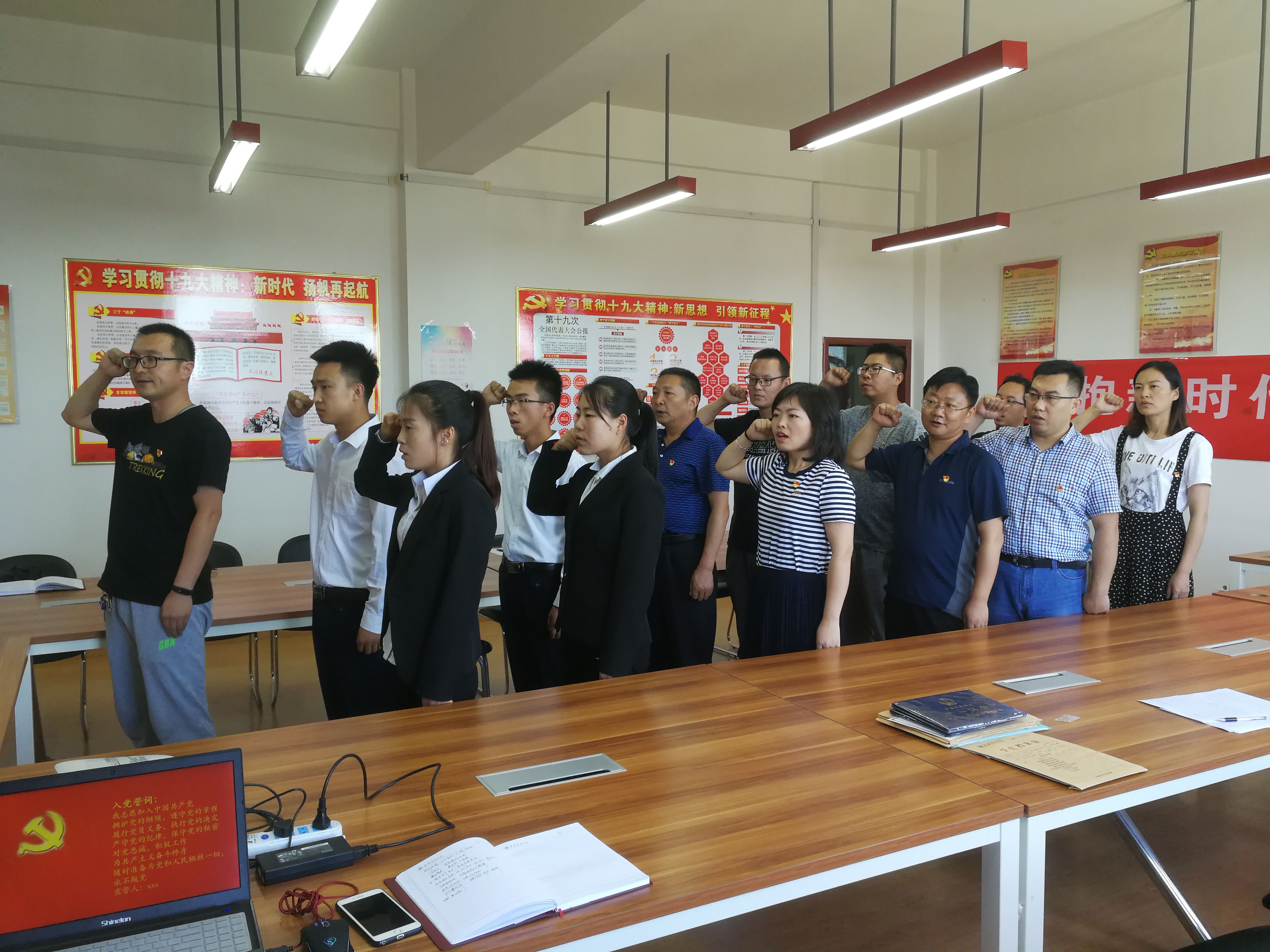 為了深入學(xué)習(xí)和貫徹黨的十九大精神,深刻領(lǐng)會(huì)習(xí)近平總書(shū)記新時(shí)代中國(guó)特色社會(huì)主義思想,把堅(jiān)定理想信念作為黨的思想建設(shè)的首要任務(wù),進(jìn)一步強(qiáng)化黨性修養(yǎng)、堅(jiān)定初心使命,激勵(lì)黨員師生繼承和發(fā)揚(yáng)黨的光榮傳統(tǒng),7月9日下午,電子信息工程系黨總支組織全體黨員和預(yù)備黨員開(kāi)展“重溫入黨誓詞,牢記入黨初心”主題黨日活動(dòng)。