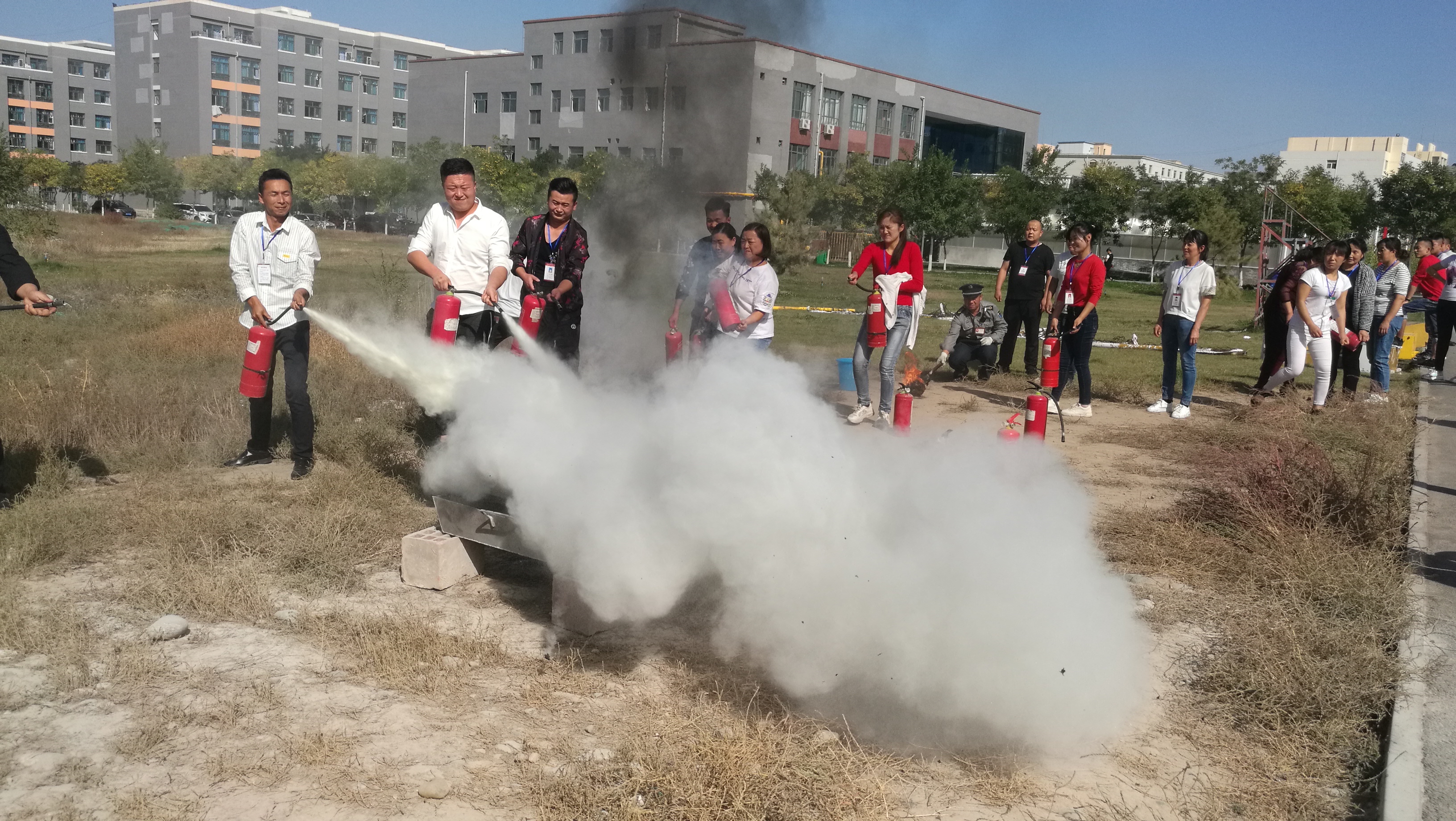 培訓中,保衛(wèi)處負責人向參加人員講解了火災應急處置、消防設施使用及維護等方面的知識。隨后,所有參加人員在操場空地進行了干粉滅火器滅火演練,每位參加人員都情緒飽滿、積極參與,最終有序完成了培訓。