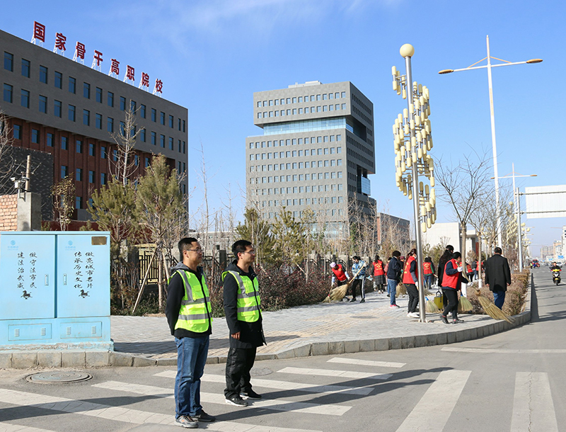 為認(rèn)真落實(shí)全市創(chuàng)城工作推進(jìn)會(huì)會(huì)議精神,提升全國(guó)文明城市創(chuàng)建工作水平,建設(shè)人民滿意的幸福城市,在市委市政府及創(chuàng)城辦的統(tǒng)一安排下,11月15日下午,在學(xué)院副院長(zhǎng)王守云、張開禮的帶領(lǐng)下,我院100多名黨員干部組成的志愿者服務(wù)隊(duì),集中在我院的劃定區(qū)域,進(jìn)行常態(tài)化的文明交通勸導(dǎo)和環(huán)境衛(wèi)生整治活動(dòng)。