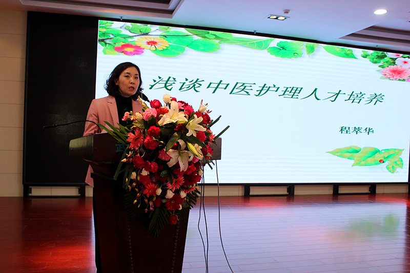 程萃華主講的題目是:《淺談中醫(yī)護(hù)理人才培養(yǎng)》。她說(shuō):中醫(yī)護(hù)理人才培養(yǎng)重點(diǎn)要做好以下幾個(gè)方面的工作:一要加強(qiáng)新入職護(hù)理人員的崗前培訓(xùn),注重中醫(yī) “仁、和、精、誠(chéng)”核心價(jià)值觀的人文素養(yǎng)的培育;二要加強(qiáng)中醫(yī)基本理論和中醫(yī)操作技能培訓(xùn),用中醫(yī)理論指導(dǎo)中醫(yī)臨床護(hù)理工作;三要制定中醫(yī)護(hù)理人才引進(jìn)計(jì)劃,著力引進(jìn)高層次中醫(yī)護(hù)理人才,加大中醫(yī)護(hù)理人才的招聘比例;四要爭(zhēng)取醫(yī)院領(lǐng)導(dǎo)支持,落實(shí)中醫(yī)護(hù)理在人才引進(jìn)和培養(yǎng)、教學(xué)科研、中醫(yī)護(hù)理技術(shù)推廣、中醫(yī)護(hù)理信息管理、重點(diǎn)專科建設(shè)等方面的經(jīng)費(fèi)投入,保障醫(yī)院的中醫(yī)護(hù)理工作向前發(fā)展。
