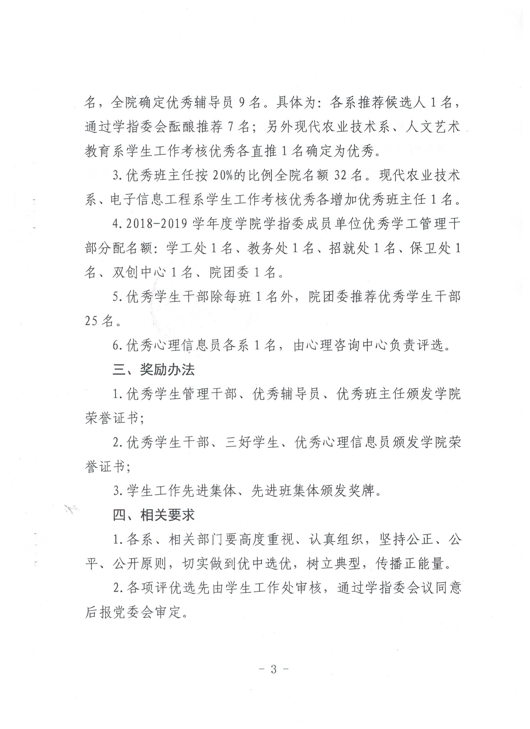 關(guān)于開展2018-2019學(xué)年度學(xué)生工作評優(yōu)選先的通知