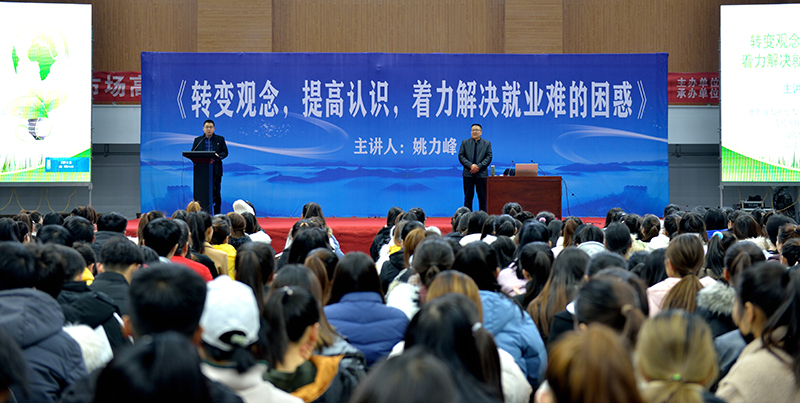 為貫徹2020屆全國普通高校畢業(yè)生就業(yè)創(chuàng)業(yè)工作網(wǎng)絡(luò)視頻會(huì)議精神,學(xué)院以習(xí)近平新時(shí)代中國特色社會(huì)主義思想為指導(dǎo),深入落實(shí)黨中央、國務(wù)院關(guān)于促進(jìn)高校畢業(yè)生就業(yè)創(chuàng)業(yè)的一系列重大決策部署,把畢業(yè)生就業(yè)工作擺在最突出位置,確保畢業(yè)生就業(yè)大局穩(wěn)定。12月14日上午,學(xué)院組織2020屆畢業(yè)生,在體育館參加了題為《轉(zhuǎn)變觀念,提高認(rèn)識(shí),著力解決就業(yè)難得困惑》的專家講座,引導(dǎo)畢業(yè)生轉(zhuǎn)變觀念、積極就業(yè)。講座由省人社廳人力資源市場(chǎng)檔案管理部部長(zhǎng)姚力峰主講,招生就業(yè)處副處長(zhǎng)董鵬主持。