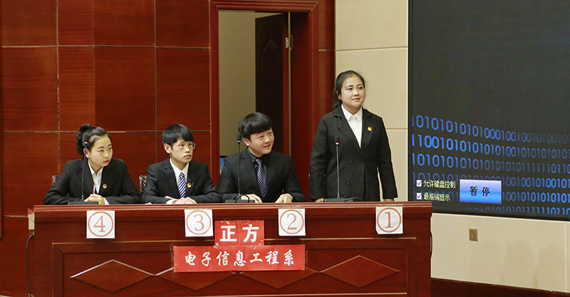 經過四輪11場次的比賽,電子信息工程系代表隊和人文藝術教育系代表隊進入最后決賽。比賽現(xiàn)場,正方電子信息工程系代表隊和反方人文藝術教育系代表隊針對企業(yè)用人以“才”還是以“德”為先拉開激烈交戰(zhàn)。雙方選手在立論、駁立論、攻辯等各個環(huán)節(jié)中思路清晰,引經據典,字字珠璣,使現(xiàn)場氣氛迅速升溫。在自由辯論環(huán)節(jié)中,雙方選手就辯題展開更深層次的辯論,個個妙語連珠、你來我往、侃侃而談,場下掌聲連連。整場比賽高潮迭起,精彩不斷,觀眾也積極參與互動,現(xiàn)場氣氛十分活躍。經過激烈的角逐,人文藝術教育系代表隊表現(xiàn)更勝一籌,獲得本屆辯論賽冠軍,電子信息工程系榮獲本屆比賽亞軍,醫(yī)學技術與信息管理系榮獲季軍,能源工程系榮獲 “優(yōu)秀辯隊”,人文藝術教育系楊婉瑩、電子信息工程系楊曉紅和能源工程系萬寶紅3位同學榮獲 “最佳辯手”。