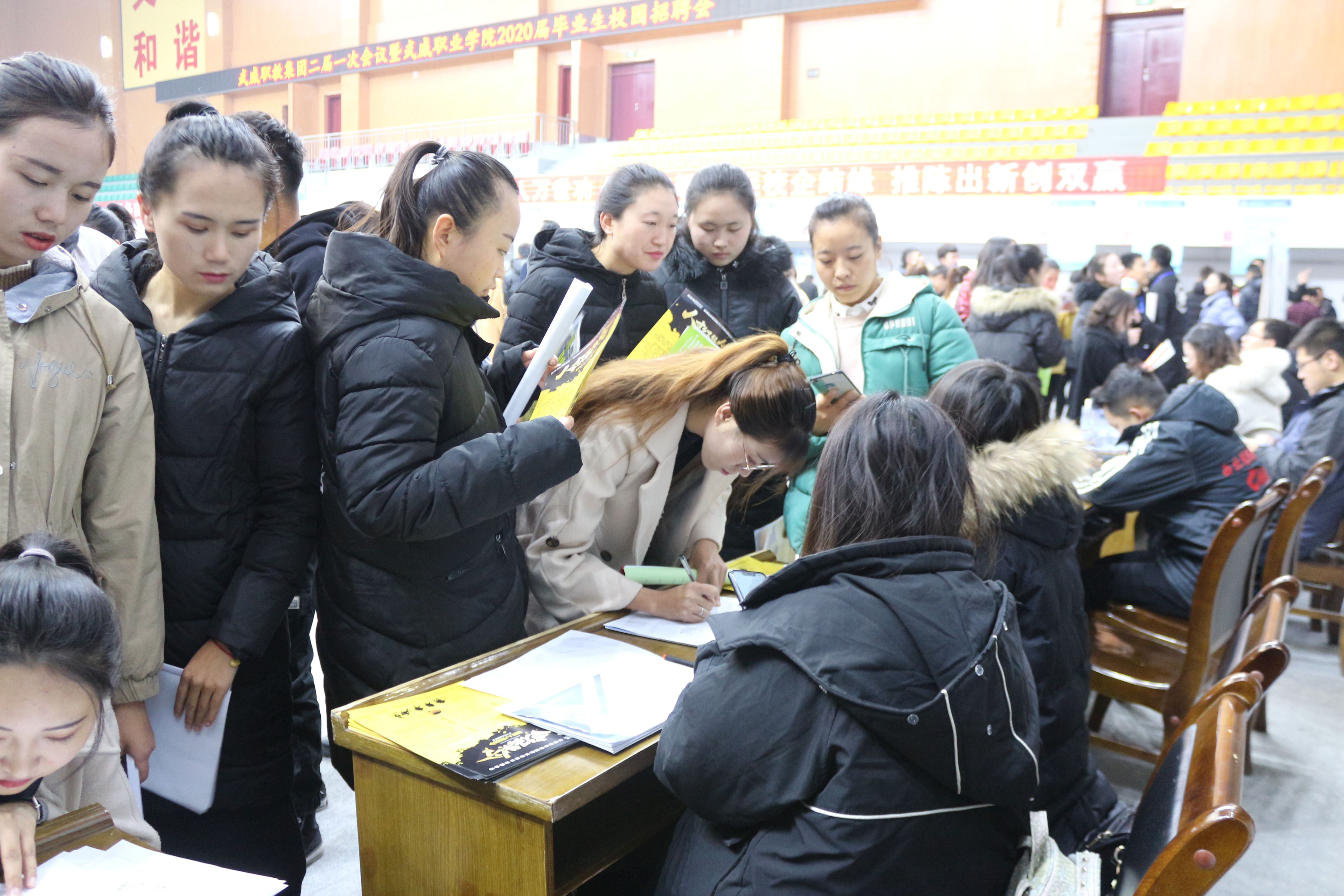 12月13日,在學(xué)院體育館舉辦了武威職業(yè)學(xué)院2020屆畢業(yè)生校園招聘會,電子信息工程系2020屆219名畢業(yè)生參加了此次校園招聘會,同時2018級同學(xué)到現(xiàn)場進行了觀摩學(xué)習(xí),此次招聘會,有118家企業(yè)到場參會,參加招聘的企業(yè)涵蓋教育培訓(xùn)、機械機電、能源化工、藝術(shù)設(shè)計、建筑房地產(chǎn)、商品貿(mào)易、金融證券、信息技術(shù)、文化服務(wù)等類別,共計提供崗位2100多個。畢業(yè)生們手持簡歷和就業(yè)三方協(xié)議穿梭于各招聘展位與招聘單位交流,招聘單位不遺余力向畢業(yè)生們積極推介。經(jīng)初步統(tǒng)計,我系畢業(yè)生此次招聘會達成了就業(yè)意向150多名,有98人在招聘會現(xiàn)場簽訂了就業(yè)三方協(xié)議。?