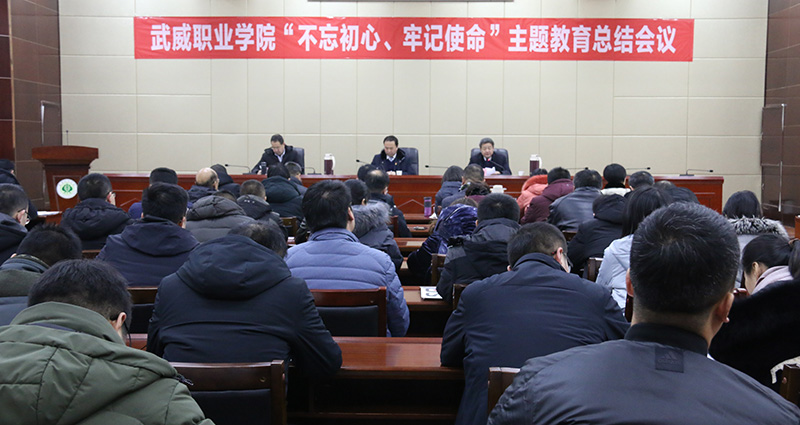 根據(jù)省委“不忘初心、牢記使命”主題教育領(lǐng)導(dǎo)小組統(tǒng)一部署和安排,1月14日下午,武威職業(yè)學(xué)院“不忘初心、牢記使命”主題教育總結(jié)會(huì)議在行樹樓報(bào)告廳舉行。會(huì)議深入學(xué)習(xí)了習(xí)近平總書記在“不忘初心、牢記使命”主題教育總結(jié)大會(huì)上的重要講話精神,回顧了學(xué)院主題教育的推進(jìn)過程,總結(jié)成效和經(jīng)驗(yàn),動(dòng)員廣大黨員干部把初心和使命轉(zhuǎn)化為擔(dān)當(dāng)作為、干事創(chuàng)業(yè)的實(shí)際行動(dòng),推動(dòng)學(xué)院各項(xiàng)工作取得新業(yè)績(jī)。