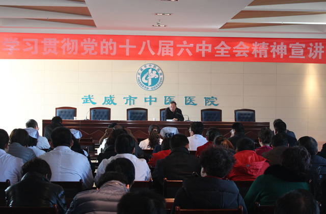 在全市上下深入學習宣傳貫徹黨的十八屆六中全會精神之際,12月15日下午,直屬附屬醫(yī)院邀請武威市委講師團張生龍同志為全院黨員和中層干部作黨的十八屆六中全會精神宣講報告。