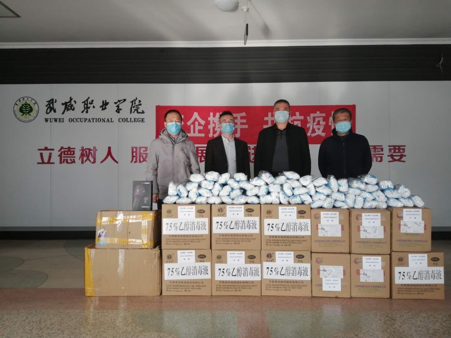3月16日上午,甘肅遠(yuǎn)杰中祥科貿(mào)有限公司向?qū)W院捐贈愛心防疫物資儀式在行樹樓大廳舉行,學(xué)院副院長王守云,甘肅遠(yuǎn)杰中祥科貿(mào)有限公司總經(jīng)理湯福壽,學(xué)院后勤處、保衛(wèi)處負(fù)責(zé)同志參加捐贈活動。