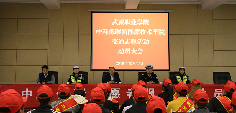 為進一步助力全國文明城市創(chuàng)建,10月17日下午武威職業(yè)學(xué)院中科低碳新能源技術(shù)學(xué)院在行樹樓報告廳召開交通志愿活動動員大會。武威市涼州區(qū)公安局交警大隊副隊長趙國權(quán),宣傳中隊馬靜、明如霞;武威職業(yè)學(xué)院能源工程系黨總支書記黃文源,中科低碳新能源技術(shù)學(xué)院輔導(dǎo)員付江鵬及中科低碳新能源技術(shù)學(xué)院志愿者服務(wù)隊全體成員參加了此次會議。