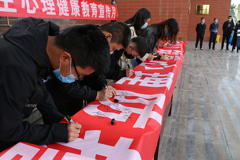 儀式最后,參加活動的全體師生在“提升心理免疫力 筑高心理防護(hù)強(qiáng)”的宣傳橫幅上進(jìn)行簽字,一起承諾特殊時期做好心理防護(hù),用積極心態(tài)面對生活。