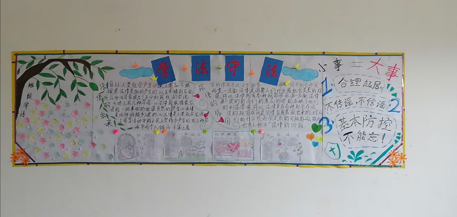 ?此次主題板報活動的開展,進一步充實了板報的宣傳教育功能,展現(xiàn)了我系學子良好的精神風貌,培養(yǎng)了大學生知法守法的優(yōu)良品質(zhì),營造了健康、積極進取的學風,更加提升了學生的法律常識。我系將借此活動為契機,加強我系學生的法律道德意識,引導我系學生知法于心,守法于行。