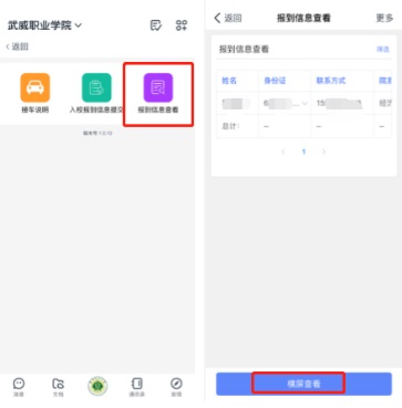3.報到信息查看:點擊報到信息查看——查看報到明細(院系、班級、宿舍等信息)。