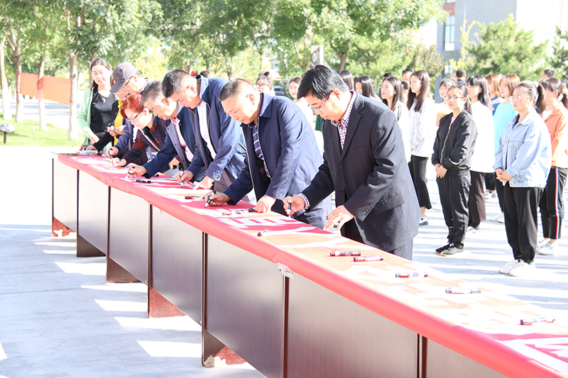參會領(lǐng)導(dǎo)及師生就“網(wǎng)絡(luò)安全,人人有責(zé),文明上網(wǎng),從我做起”進(jìn)行集體簽名。