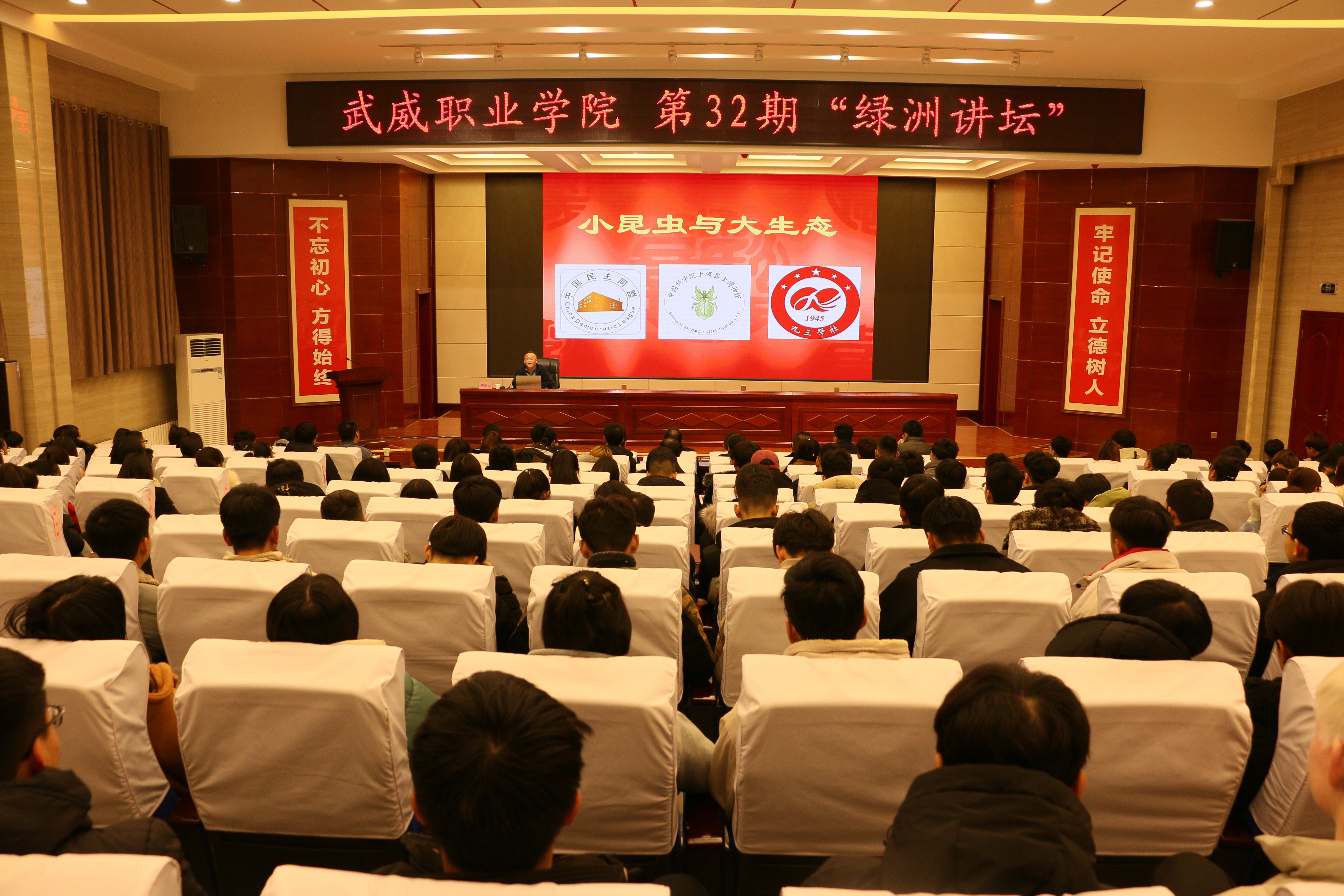 12月18日,武威職業(yè)學(xué)院“綠洲講壇”第32期在學(xué)院菁英廳舉行,本期活動邀請到中國科學(xué)院上海昆蟲博物館館長殷海生教授作主題為“小昆蟲與大生態(tài)”的報(bào)告。學(xué)院現(xiàn)代農(nóng)業(yè)技術(shù)系相關(guān)專業(yè)學(xué)生、中科低碳新能源技術(shù)學(xué)院師生代表共220人聆聽了報(bào)告。本期講壇由能源工程系黨總支書記胡建宏主持。