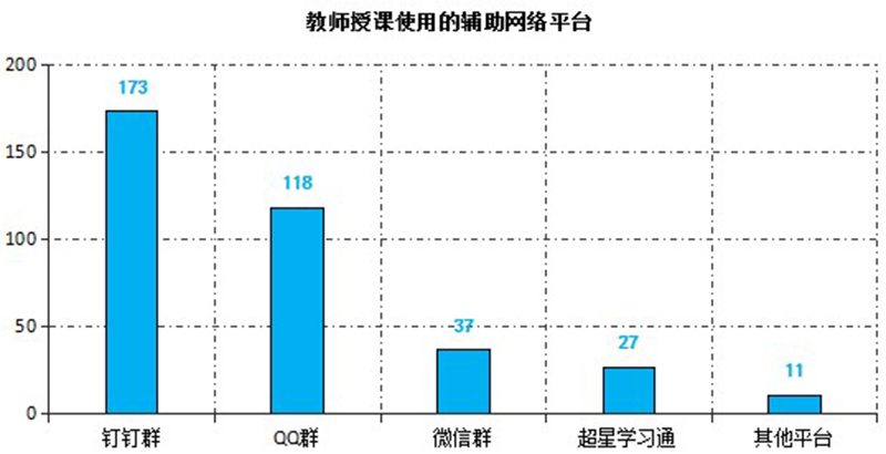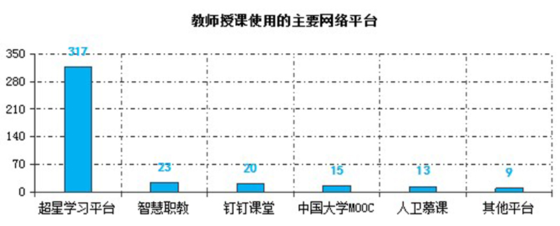 截止3月6日,教師使用武威職業(yè)學(xué)院在線教學(xué)平臺(tái)建設(shè)在線課程226門(mén),使用超星學(xué)習(xí)通開(kāi)展教學(xué)317次,釘釘課堂30次,智慧職教23次,中國(guó)大學(xué)MOOC15次,人衛(wèi)慕課13次,其他平臺(tái)9次。任課教師還選用釘釘群、QQ群或微信群等作為課程輔助交流平臺(tái)實(shí)施教學(xué)組織與管理。在線教學(xué)過(guò)程中,除開(kāi)始時(shí)部分時(shí)段因同時(shí)在線人數(shù)過(guò)多導(dǎo)致網(wǎng)絡(luò)波動(dòng)外,其他時(shí)間教學(xué)平臺(tái)均能穩(wěn)定運(yùn)行,較好的保障了在線教學(xué)的順利實(shí)施。