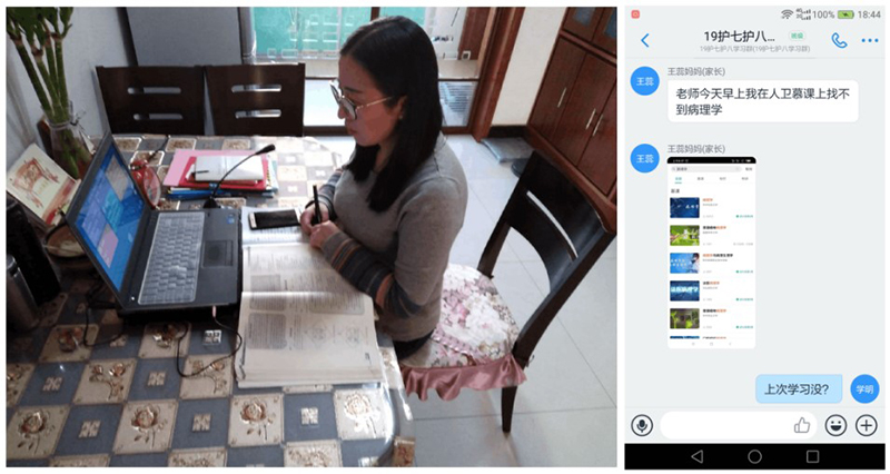 護(hù)理系教師陳調(diào)調(diào)利用釘釘群組織學(xué)生在線交流
