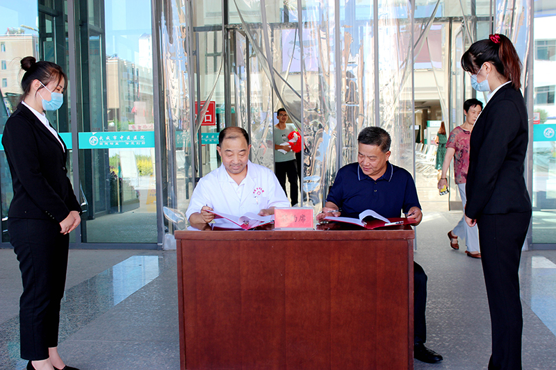 張?zhí)斓峦驹谥罗o中說:醫(yī)院能夠成為學(xué)院教師實(shí)踐基地,是武威職業(yè)學(xué)院對(duì)市中醫(yī)院各方面工作的信任和肯定,也是醫(yī)院提升綜合素質(zhì)的良好平臺(tái),更是醫(yī)院加快發(fā)展的新起點(diǎn)。醫(yī)院要以此為契機(jī),進(jìn)一步強(qiáng)化“科教興院”意識(shí),抓住機(jī)遇、乘勢(shì)而上,虛心學(xué)習(xí)、取長(zhǎng)補(bǔ)短,爭(zhēng)取以一流的管理、一流的服務(wù)、一流的技術(shù)、一流的設(shè)備、一流的環(huán)境為人民群眾的健康做出更大的貢獻(xiàn)。