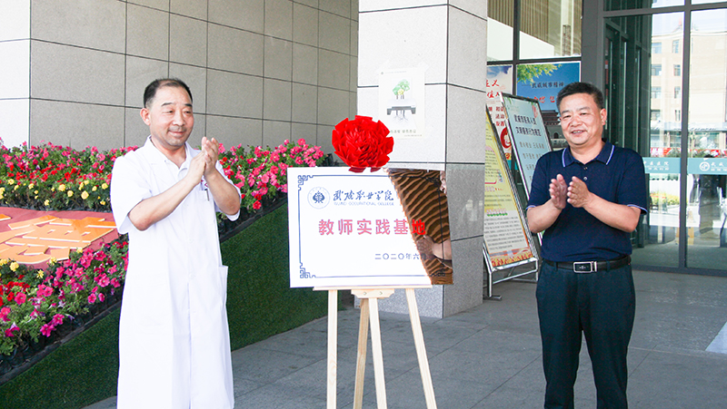 雙方負責(zé)人簽訂了《教師醫(yī)院實踐協(xié)議書》,共同為學(xué)院醫(yī)學(xué)類專業(yè)雙師型教師實踐基地揭牌。