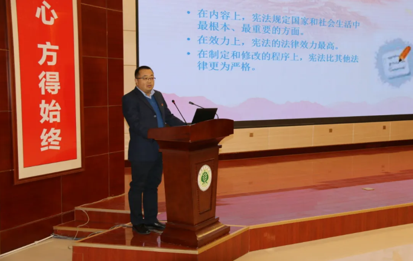 魏全民圍繞憲法的精神與要義重點(diǎn)講授了憲法的產(chǎn)生與發(fā)展歷史、現(xiàn)行的憲法原則、公民的基本權(quán)利和義務(wù)等內(nèi)容,讓同學(xué)們進(jìn)一步了解憲法,懂得了尊崇憲法、學(xué)習(xí)憲法、遵守憲法、維護(hù)憲法、運(yùn)用憲法的重要性。