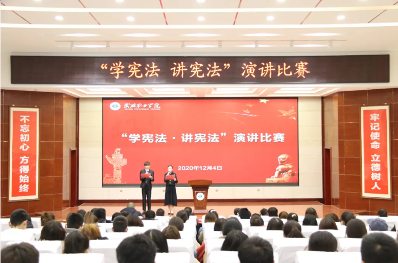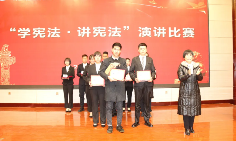 12月4日下午,學(xué)院“學(xué)憲法 講憲法”演講比賽于菁英廳舉行。學(xué)院黨委委員、副院長(zhǎng)何毅出席活動(dòng)。擔(dān)任此次比賽的評(píng)委是:宣傳統(tǒng)戰(zhàn)部部長(zhǎng)魏全民,雙創(chuàng)中心副主任顏魯薪,學(xué)生工作處姚斌,省級(jí)普通話測(cè)試員、宣傳統(tǒng)戰(zhàn)部趙炯星,質(zhì)量管理辦公室馮文娟,院團(tuán)委王冠群。各系輔導(dǎo)員、民法典伴我行主題手抄報(bào)比賽獲獎(jiǎng)的25名同學(xué)及師生代表共220人參加活動(dòng)。