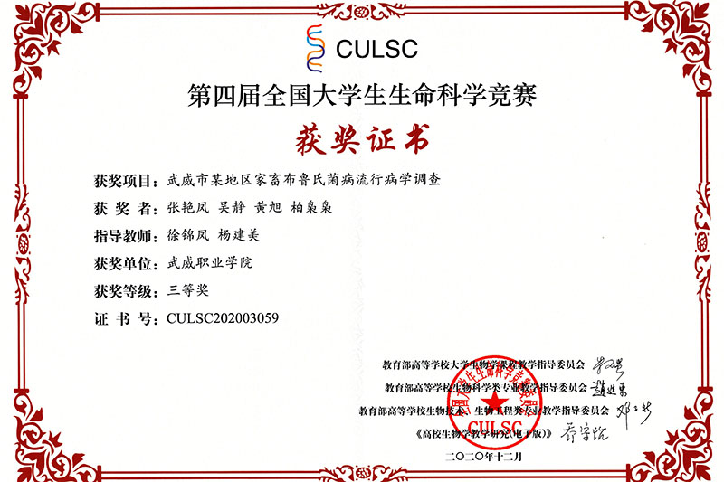 近日,第四屆全國大學(xué)生生命科學(xué)競賽落下帷幕,經(jīng)過激烈角逐,我院推薦參賽的兩個項(xiàng)目獲得全國二等獎三等獎,學(xué)院成為省內(nèi)獲得此次全國比賽獎項(xiàng)的唯一高職院校。在此前舉辦的甘肅賽區(qū)比賽中,我院兩個項(xiàng)目獲得甘肅省一等獎1項(xiàng),二等獎1項(xiàng),被推薦參加全國總決賽。此次獲得全國競賽獲獎不僅填補(bǔ)了我院學(xué)生在全國競賽中獲獎的空白,也為學(xué)院創(chuàng)建“雙高”院校增添了重要成果。