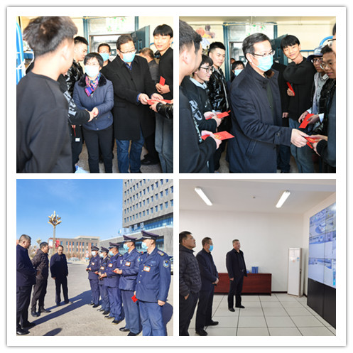 ? ? 趙明一行先后來到學(xué)生公寓、消防控制中心、學(xué)院總值班室、鍋爐房、醫(yī)務(wù)室、快遞代辦點(diǎn)和各值班點(diǎn),代表學(xué)院黨委看望、慰問春節(jié)期間堅(jiān)守在工作崗位的值班人員,并向他們送上節(jié)日慰問金。對(duì)值班人員堅(jiān)守崗位、默默奉獻(xiàn)表示衷心的感謝,并祝大家新春快樂,家庭幸福。希望全體值班人員嚴(yán)格按照學(xué)院疫情防控要求,繼續(xù)細(xì)心細(xì)致做好校園安全穩(wěn)定和后勤保障工作。