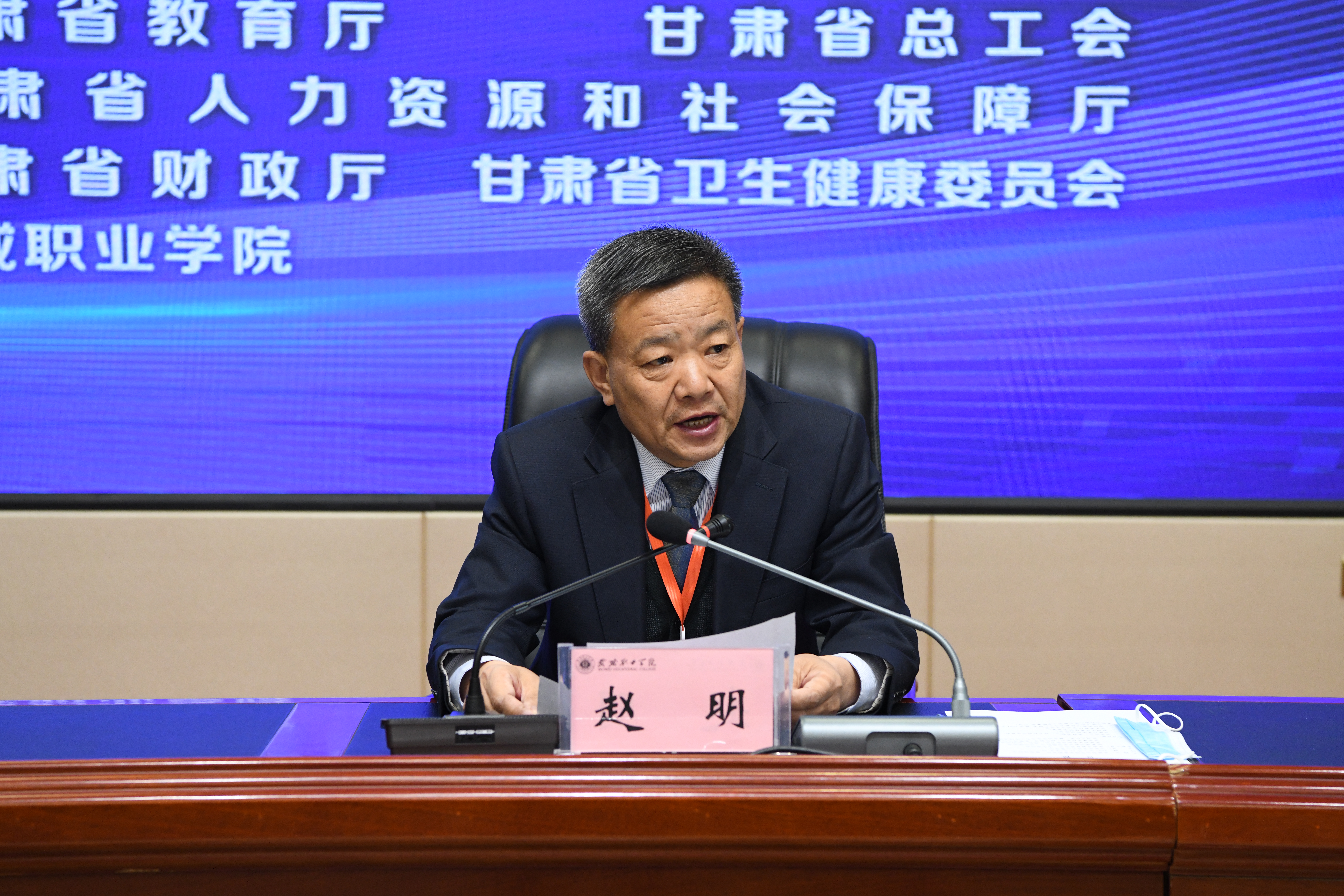 武威市教育局黨組書記、局長馬生威同志宣布2021年全省職業(yè)院校技能大賽武威職業(yè)學(xué)院賽點(diǎn)開賽。
